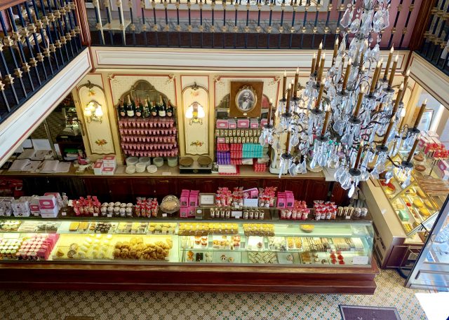 Miremont must have the best views of any ice-cream parlor in the world. From the entrance on the street you can see straight through to the plate glass window overlooking the sea, and Wes Anderson would feel right at home with the decor. Opened in 1872, it was appointed to the Royal House of Spain by King Alphonso XIII and Rostand once wrote that “at teatime, there are at Miremont fewer pastries than Queens and fewer rum babas than Grand Dukes.” It has a splendid display of beautiful pastries but the ice-cream is the real drawing-card, with refreshing flavors that aren’t commonly found, such as peche de vigne (red vine peaches) and nougat, filled with vivid green pistachios and flavored with honey.