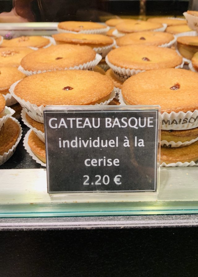 We were gently drawn into the Pierre Otezia store by the window display with the goal to buy some gifts for the grandparents (who were at home, taking care of our children and dog while we enjoyed our first grown up weekend since we became a family of four in January). Before we left with a lovely bag brimming with fromage de brebis (sheeps cheese), local black cherry marmalade to eat with it and dried sausage from the Aldudes Valley, we were presented with an assortment of ham and cheese to taste, with each different option explained by the knowledgeable shop assistant. A great way to taste some of the local culinary delights.