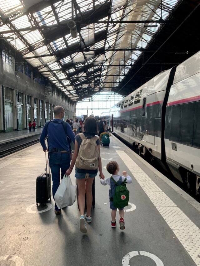 We decided on Cassis for our trip as it fulfilled our main criteria: Easily accessible by train, plenty of sunshine, child friendly beaches and no need for a car (so we didnโt have to deal with haphazard French parking). After three and a half hours on the TGV (the French high speed train) we arrived at Marseille Saint-Charles train station, navigated our way through the summer holiday travel chaos, and met our pre-arranged taxi for the 45 minute transfer to Cassis. (There is also a local train connection which takes 22 minutes.) We booked an Airbnb rather than a hotel because we needed a kitchen and a washing machine, which conveniently doubled up as in-house entertainment.