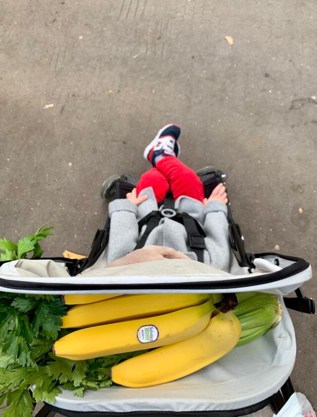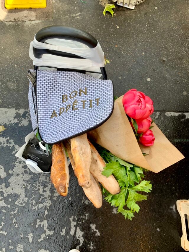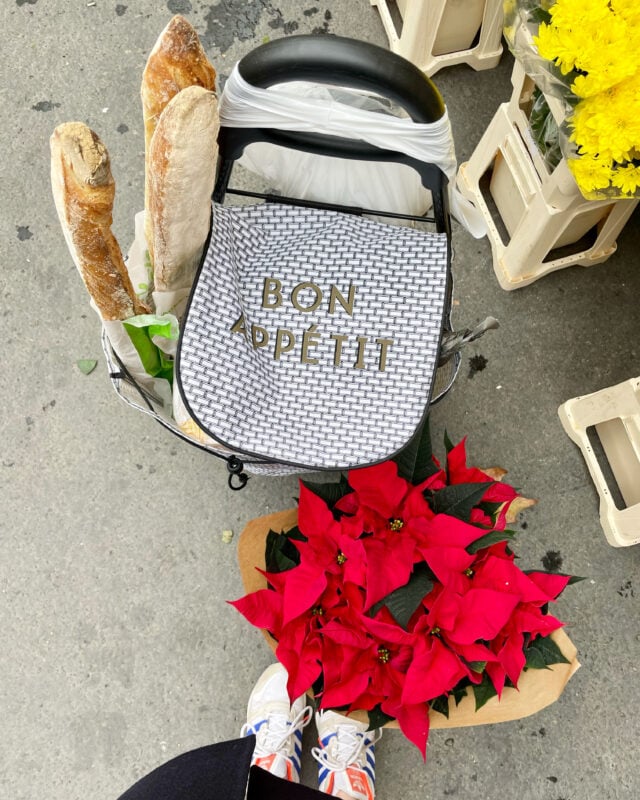 The thin plastic bags the vendors have are notorious for splitting (and cutting off circulation to your fingers) and itโs better for the planet. I love our trusty trolley and throw everything in there, dirt and all. A separate basket or tote bag for more delicate things like a botte (bunch) of herbs, flowers and eggs is also a good idea. A lot of markets now have bins set up for people to bring their compost (in biodegradable plastic or brown paper bags) so if youโre going to the market and want to cut down on waste then you can take that with you as well.