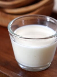 Many grocery stores and cheese shops sell lait ribot, fermented milk from Brittany. Arabic markets also sell fermented milk (lait fermentรฉ) as well. In many recipes you can substitute plain whole milk yogurt or you can milk 1 tablespoon of white or cider vinegar, or lemon juice, with 1 cup (250 ml) of whole milk and let it stand ten minutes.