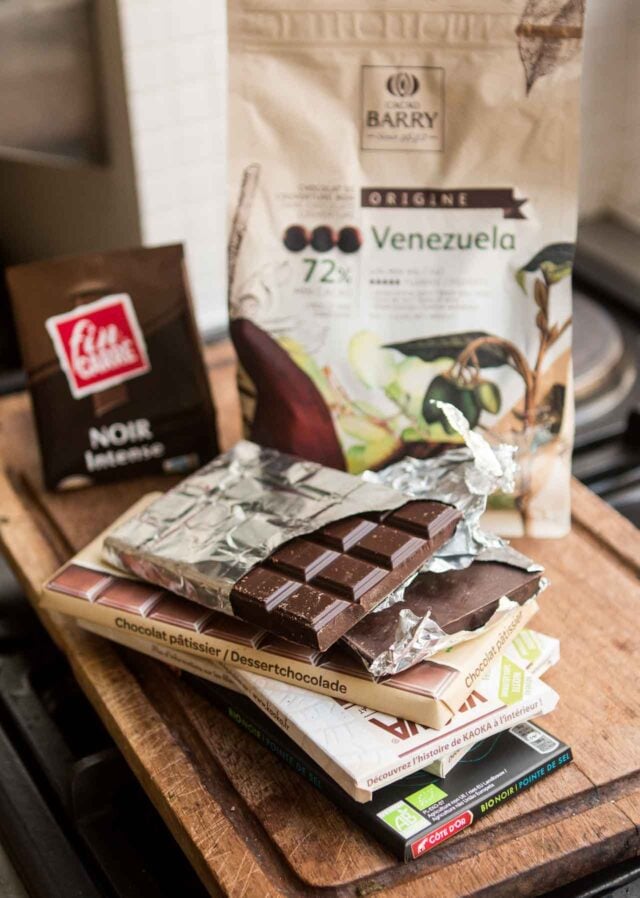 Similarly, many of the new high-percentage chocolate, boasting cocoa contents of 70% and above are very acid and can cause creams and ganaches to break. So I recommend following the advice in the recipe or using dark chocolate in the 35-64% range, for best results.