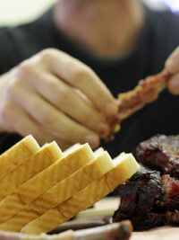 When I brought my ticket to the cashier, I was a bit surprised when the bill came to nearly thirty dollars (not including tip), but I suppose thatโs cheaper than a trip to Texas. And it was mighty good barbecue, although I had to leave two of the ribs behind because, seriously, I just couldnโt eat anymore. For those that want to get out of there for less than I did, there are lunch specials, like the barbecue beef sandwich with a side and drink for $11.50.