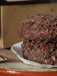 Then I dug, and dug, and dug, until the once beautiful box was scraped clean, and all that remained were a few bits of chocolate and cream so well-lodged in the corners, that even my extremely persistent digging with a little spoon wouldnโt release them. Then the box got tossed before the friend arrived so no one was the wiser, which goes to show how good intentions can so easily go astray.