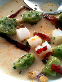 When she pulled out a bunch of the most perfect coriander (cilantro), with not a limp leaf or limb in sight, we talked about the quality of produce in Paris, both agreeing that the Biocoop natural food stores have some of the best produce in the city. Although she likes to buy things at the stand of Joรซl Thiรฉbault, who Iโd love to shop from but heโs only at markets in the far-off sixteenth arrondissement. Plus Iโve just realized that the people in the natural food stores are some of the nicest people in Paris, which leads me to think that not enough people are eating organic fruits and vegetables around here ; )