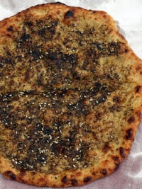 - Transfer the mixture to a shallow serving bowl and make a few swirls in the labneh, then drizzle in a fairly generous amount of olive oil. Top with zaโatar, or some lively fresh herbs, and serve with bread for dipping.