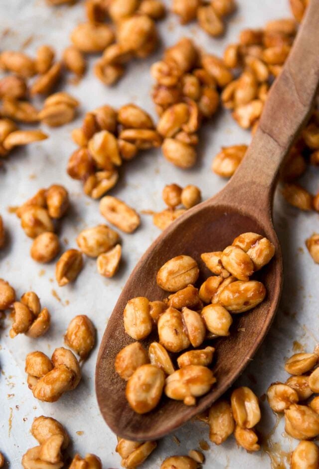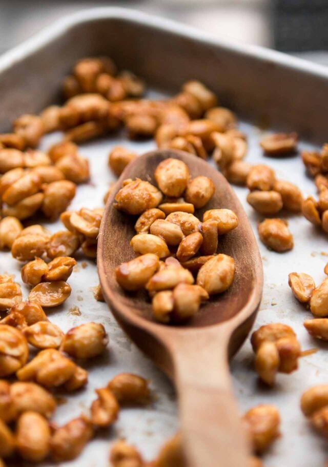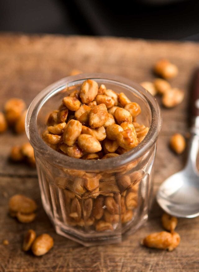 These candied peanuts are a snap to make and go well with everything. I’ve chopped them up to sprinkle over ice cream, or sometimes serve them as a bar snack with drinks before dinner. Either way, they’re pretty addictive and I can’t resist munching on them if I have them around.