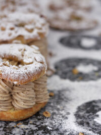 Since then, Jacques Genin moved and opened an actual shop and salon du thรฉย (tea salon) at the northern tip of the Marais which sells his lovely chocolates and spectacular caramels. He also makes an edited selection of pastries to order, including the best Paris-Brest Iโve ever had in my life, which I consider the best pastry in Paris. (I recreated it as best I could in My Paris Kitchen, although he uses some ingredients that arenโt available to home cooks.) Because he is a perfectionist, he got overwhelmed when word spread about this incredible talent and his extraordinary desserts, and he stopped making individual cakes, tarts and pastriesย for sale, although some are available in the tea salonย where people can leisurelyย sip coffee, tea, or his sublime hot chocolate. (The Paris-Brest is usually not available in the salon but you can order one in advance that serves 4 or more, from the shop, and get it to go.)