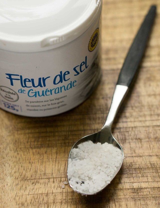 My preferred finishing salt is fleur de sel, the top layer of mild salt thatโs raked off the surface of salt marshes. To my taste, fleur de sel is just slightly salty, yet mild, and has a gentle flavor that doesnโt overwhelm, and is a flavor unto itself. French fleur de sel is harvested in the Guรฉrande, as well as in the Camargue and the รle-de-Re. Theyโre all fine but I prefer fleur de sel de Guรฉrande.