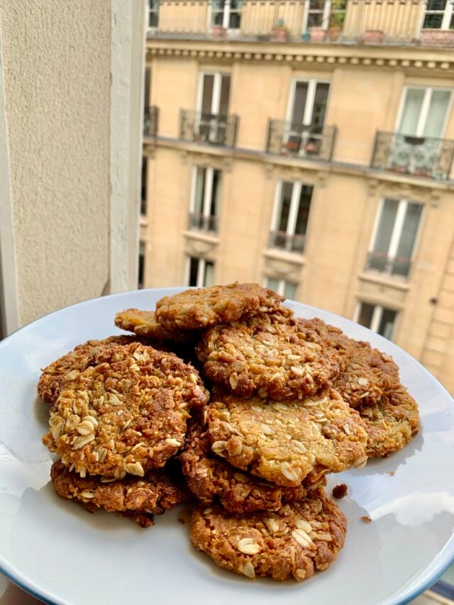 You are probably wondering what the link is between a World War I battle and biscuits? Legend has it that wives and families in Australia and New Zealand sent care packages to soldiers that included biscuits made from store cupboard staples such as rolled oats, golden syrup and flour. Eggs were scarce so were not included, making these treats perfect for surviving the long journey overseas.ย