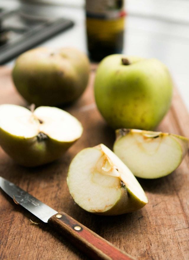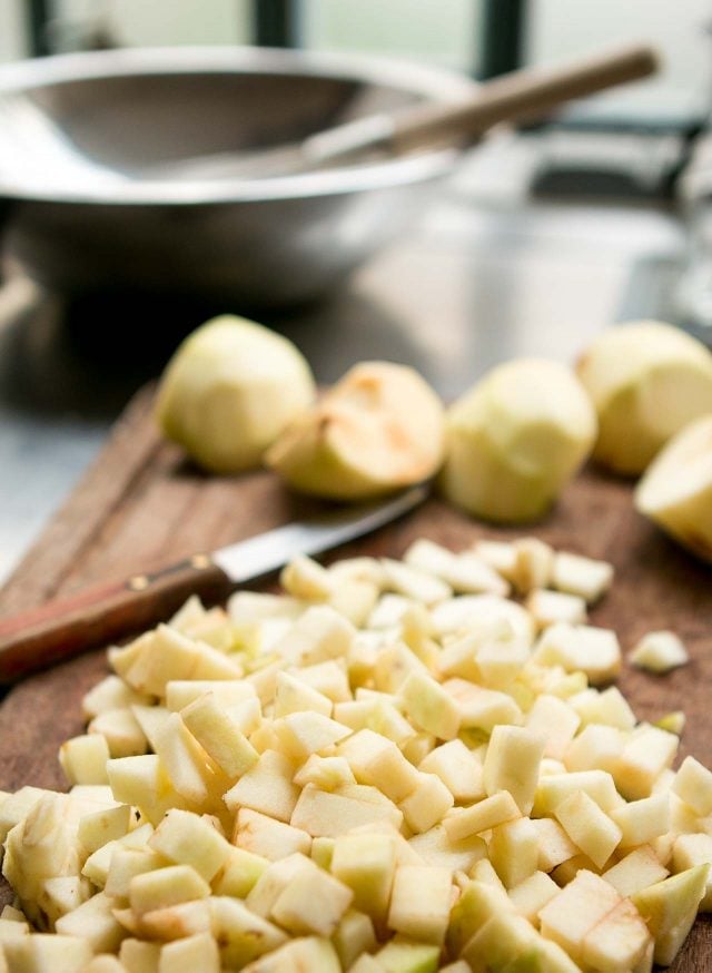 - 3 baking apples (about 1 1/2 pounds, 700g), peeled, cored, and diced