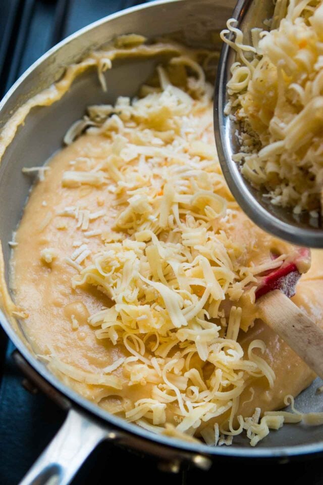 • Add about 3/4s of the grated cheese, and stir until well-mixed.