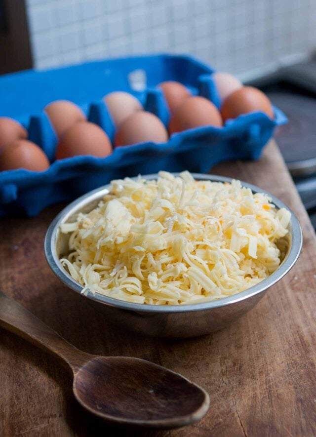 • 3/4 cup (about 3 ounces, 90g) grated cheese, (See above for ideas)