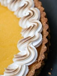 https://fat-dailynews.info/2009/05/tart-au-citron-french-lemon-tart/ One could pipe whipped cream on it or top it with meringue. To do so, let it cool and spread or pipe whipped cream over the top or serve a dollop alongside. If you want to give a go at meringue, check out my Lime Meringue Tart recipe or the marshmallow topping that I use on my Pumpkin Pie with Marshmallow Topping.