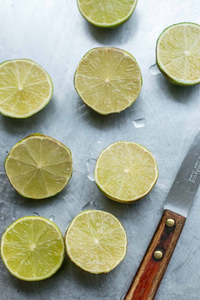 Try to find limes that are actually golden-yellow in color when shopping. The dark green limes you see are limes that have been picked unripe then gassed to guard that color. When limes are yellow and ripe, they have a softer flavor, with a hint of citrusy sweetness. Ethnic markets, especially those catering to Asians and Latinos, are great places to look for them. Key Limes, if you can find them, are the classic.