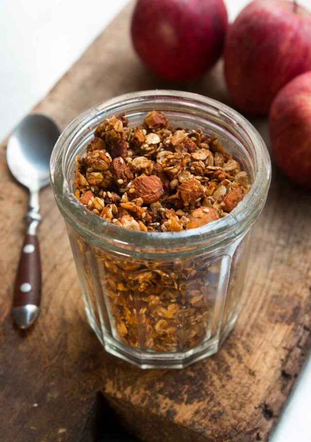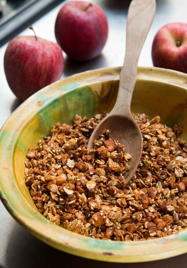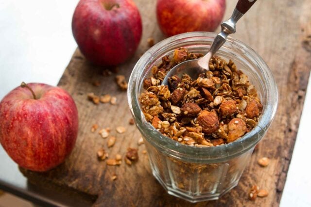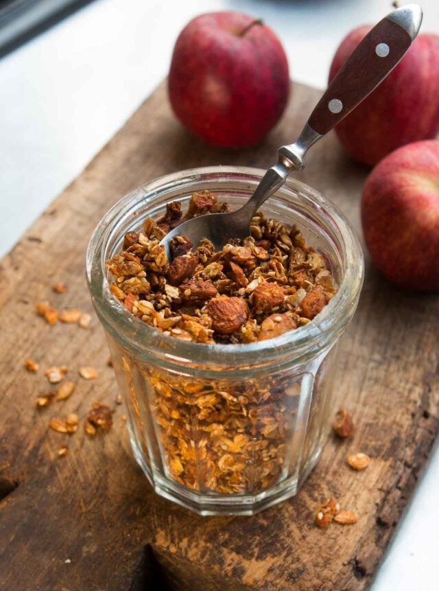 To keep it on the healthy side, this granola recipe uses apples to replace the generous use of oil found in other granola recipes.