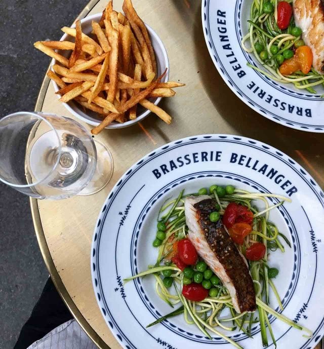 Brasserie Bellanger (140, rue du Faubourg Poissoniรจre, 10th) is one of the newer of the low(er)-priced bistros that have popped up in Paris over the last few years. The young owners promise everything is fresh and fait maison (homemade), which was a criticism rightly leveled at some of the old-school bistros that lost their luster, noting that the brasserie sources things directly from producers, which allows them to keep prices modest. Our vegetable-centric pollack (above) was nicely cooked, served on a heap of fresh vegetables. The frites we ordered alongside โ because man cannot live by fish alone โ were some of the best Iโve had in town. We finished with an รle flottante filled with mango puree and very good Paris-Brest. The staff is very friendly although if you choose a table outside, expect a majority of the neighboring tables to be occupied smokers.