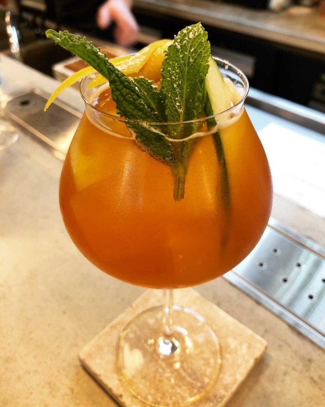 Staying by the sea, the nautical theme at Copper Bay will take you away from being in a bustling city center, along with a line-up of seasonal cocktails shaken and stirred up by the friendly staff. There may be a Tipsy Tea, their interpretation of a Pimmโs No. 1 Cup, or a Tzatziki, made with dill-infused vodka, basil, cucumber, and mastic spirit. You can also get artisan sparkling apple cider or pastis (with or without orgeat syrup), served by the glass, carafe, or even frozen.