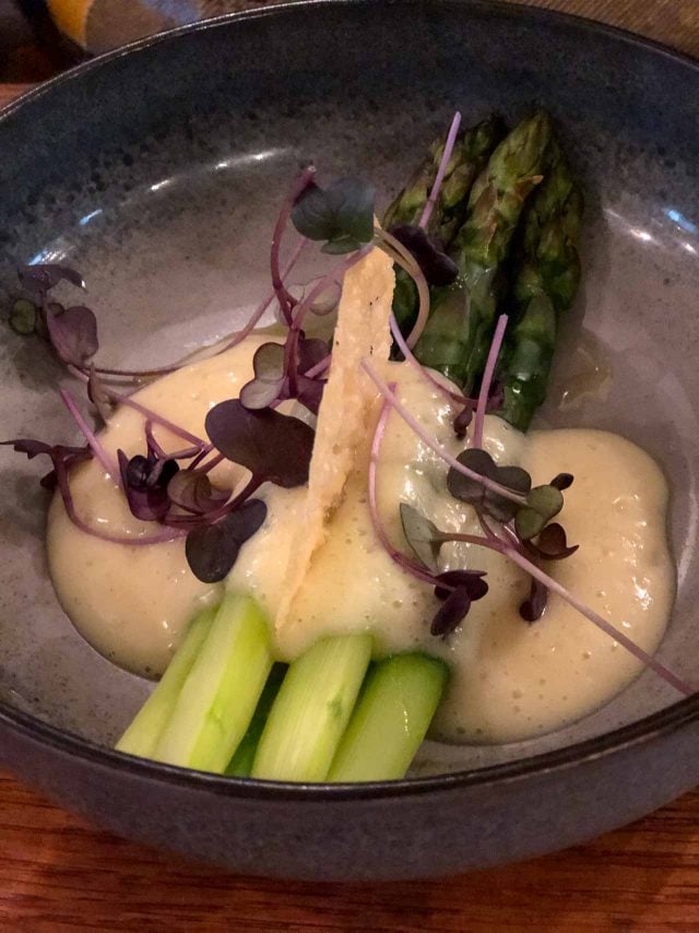 Another place that Iโve been enjoying, where Iโve not taken a picture at, is Le Mermoz (16, rue Jean Mermoz, 8th). This starkly-decorated bistro allows you to focus on the food, which isnโt just beautifully-presented, but itโs perfectly prepared. A recent lunch started with a plate of lightly blanched green beans with fresh almonds and pickled apricots. Dessert was softly cooked cherries bathed in sabayon with cubes of Gรขteau de Savoie and a sprinkling of fresh elderflowers. The focus is on quality of ingredients and preparation, rather than portion size, at least at lunch, when Iโve dined there. But itโs usually enough for me.
