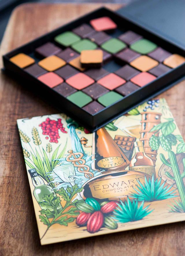 On the sweet side, I went to a launch party for Aqua Vitae chocolates from Edwart. Edwin, the owner and chocolatier, loves liqueurs and spirits and his new collection of chocolates brilliantly incorporates them. Sometimes when people add liqueurs, they can be too faint to fully appreciate. But each chocolate in this assortment, which includes one blended with Glenfiddish whisky aged in IPA barrels, Del Maguey mezcal and Venezuelan chocolate, and the elusive Chartreuse vรฉgรฉtal elixir (unavailable in the U.S., but comes in a handy wooden box for travel), boldly go where few chocolates dare to go. The collection is available for a limited time only.