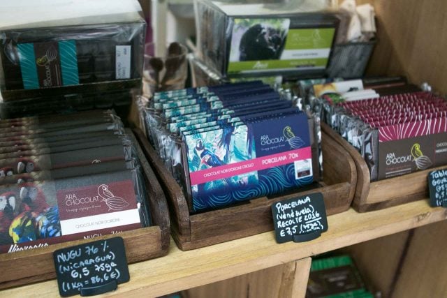 Having dinner one night at Churrasqueira Galo, I spotted a sign across the street for a torrรฉfacteur of chocolate, meaning, they torrรฉfier (roast) and grind their own beans. Making chocolate is a special skill and most chocolatiers are fondeurs (melters) of chocolate, and itโs rare to find one that grinds their own beans, especially where youโre not expecting it.
