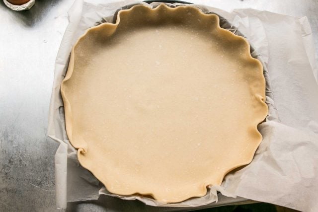 Another astuce (cooking tip) is thatย French home cook use a solidย moule ร tarte, not false-bottom tart pans, thatย can beย lined with parchment paper. (Another bonus to the pre-made dough: They come with their own sheet of parchment paper.) Anticipating the backlash if I suggested a piece of bakeware that you couldnโt get your hands on โ rightfully โ or if I asked you to go out and buy pre-made tart dough, I made my ownย pรขte brisรฉe, a studier dough thatโs generally reserved for savory tarts.