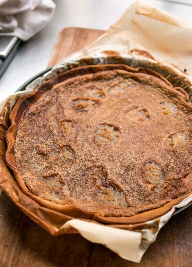 Itโs probably time here to mention that this is a dessert that would typically be made by a home cook or small, local restaurant. French cooks donโt try to compete with the local pรขtisserie and are happy with โhomemadeโ desserts, that may be a little off-kilter, or whatever. They donโt take points off for things like a crack in the crust or filling running over the side.