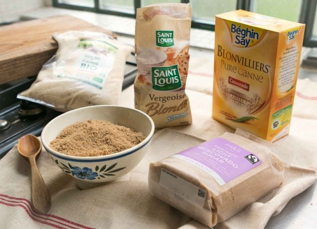 Iโve got quite a collection of brown sugars, and although I think sucre vergeoise (brown beet sugar) is the traditional sugar thatโs used, if you have light brown American sugar, or oneย similar to those shown, you can use that. No need to torture yourself over what is the โrightโ kind of sugar; any sugar thatโs light amber in color will work.