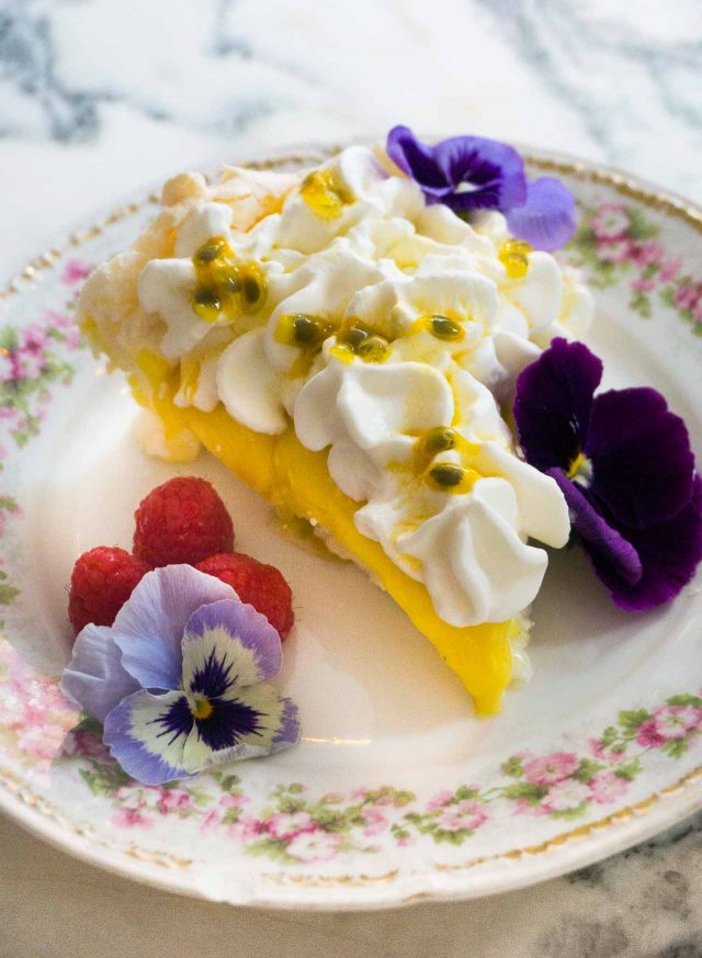 Dessert was an outstanding Pavlovaย with speckles of passion fruit seeds and pulp in between stars and swoops of meringue. I loved it.