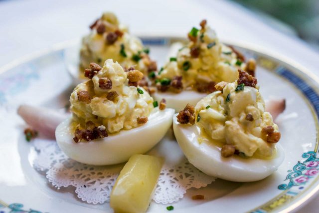 So he likely couldnโt resist adding bacon to another French classic, ลufs mayonnaise, with pickles in the filling, and topped with crisp bacon. When I met him later while passing through the dining room, he mentioned that bacon isnโt a traditional addition to this dish, but in the U.S., itโs likely to win over more converts. (Me? Iโm already sold. Itโs one of my favorite bistro dishes.) However itโs not something thatโs overly fussed over in France, and while usually itโs just a few egg halves with mayo spooned over them, chefs and cooks sometimes have fun and play with them, too. The dish is so beloved in France that thereโs the Association de Sauvegarde de lโลuf Mayo (ASOM), to make sure it stays in the public limelight, where it belongs.