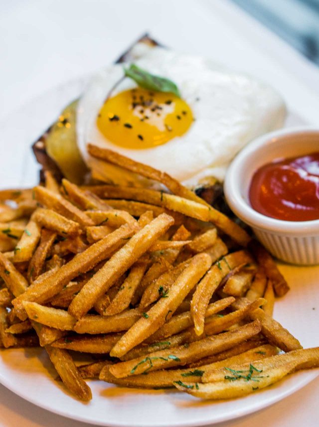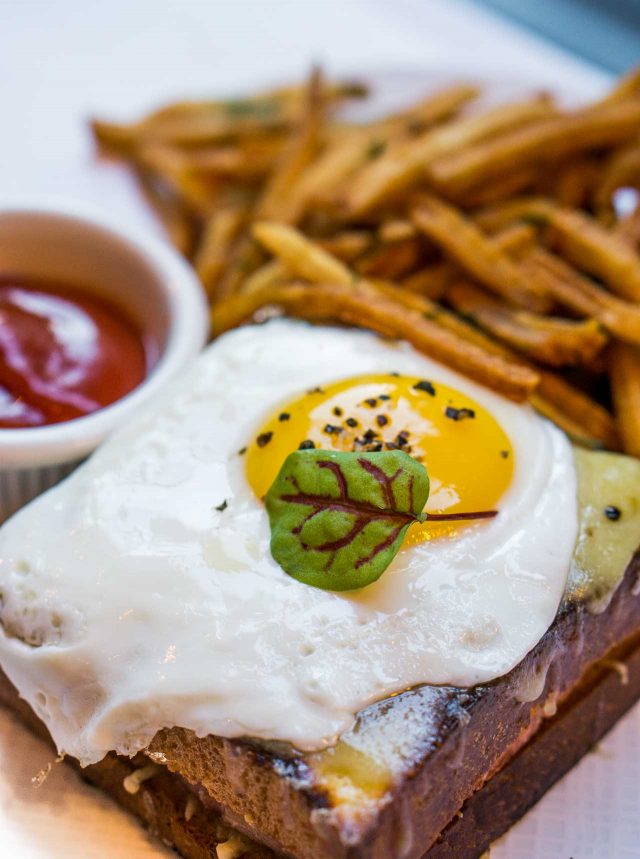 Back in France, Iโd been craving a Croque Monsieur, which is my version of โblack pepper,โ I guess, and I want it all the time. But who can argue with a fried ham and cheese sandwich, held together with bรฉchamel, and a giant mound of superbย frites?