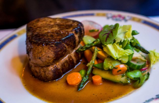 My Frenchmanย went for the Filet of beef with sauce Diane, a sauce made with pan juices thatโs sometimes enriched with cream or butter, but here it was kept on the lighter side so it didnโt overwhelm the beef, which came out in an all-American portion. (So he took les restes home in le doggy bag.)
