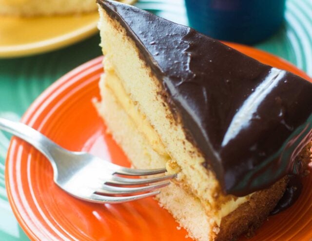 Boston Cream Pie is one of my favorite desserts of all time. It was one of the options in the cafeteria line at my elementary school and the one I always grabbed and put on my tray, next to my codfish sticks, boiled potatoes with parsley, and butter sandwiches on dense Pepperidge Farm-style white bread, which they served in half-portions, each rectangle slipped into a brown waxed bag. (The other option was peanut butter.)