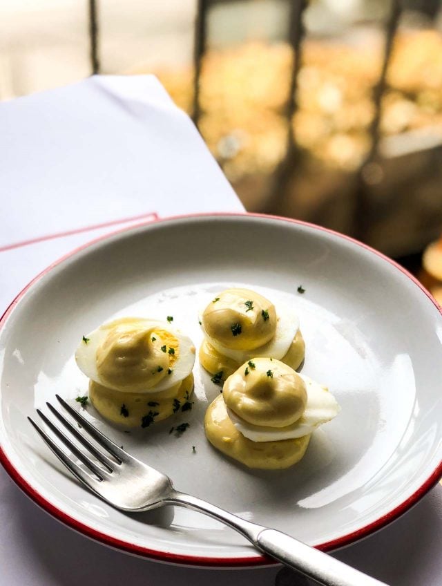I donโt mind all that stuff (although Iโd be okay if there was less foam, and smears of sauceโฆ), but Iโm never unhappy when I can start a meal with ลufs mayonnaise, move on to a plate of steak-frites, and finish up with an ice cream-filled profiterole doused in warm chocolate sauce, washing it all down with a pot of house wine. Even better is doing it all for around twenty bucks.