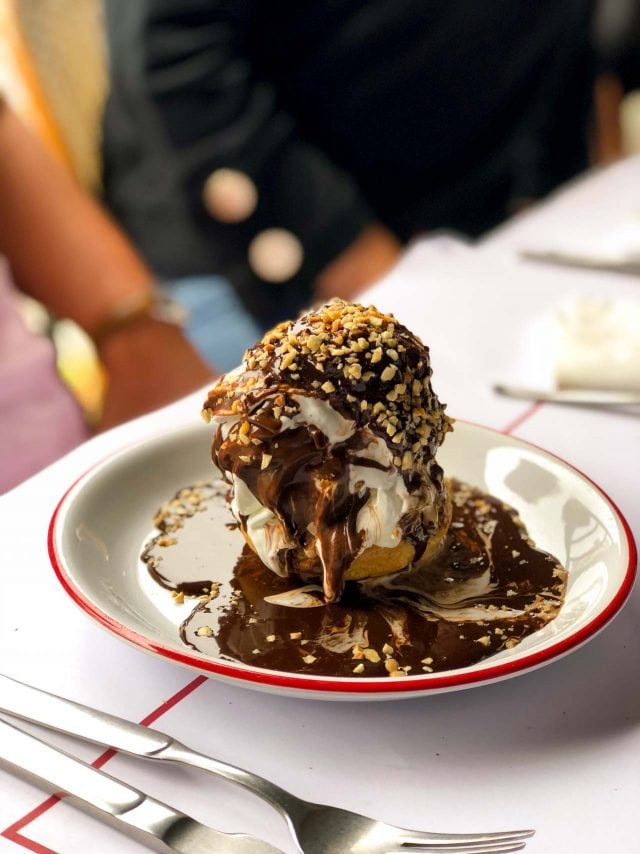 Desserts are fine, and ours in the course of several visits have been hit or miss. The coffee รฉclair we shared wasnโt fancy, but it was very good.