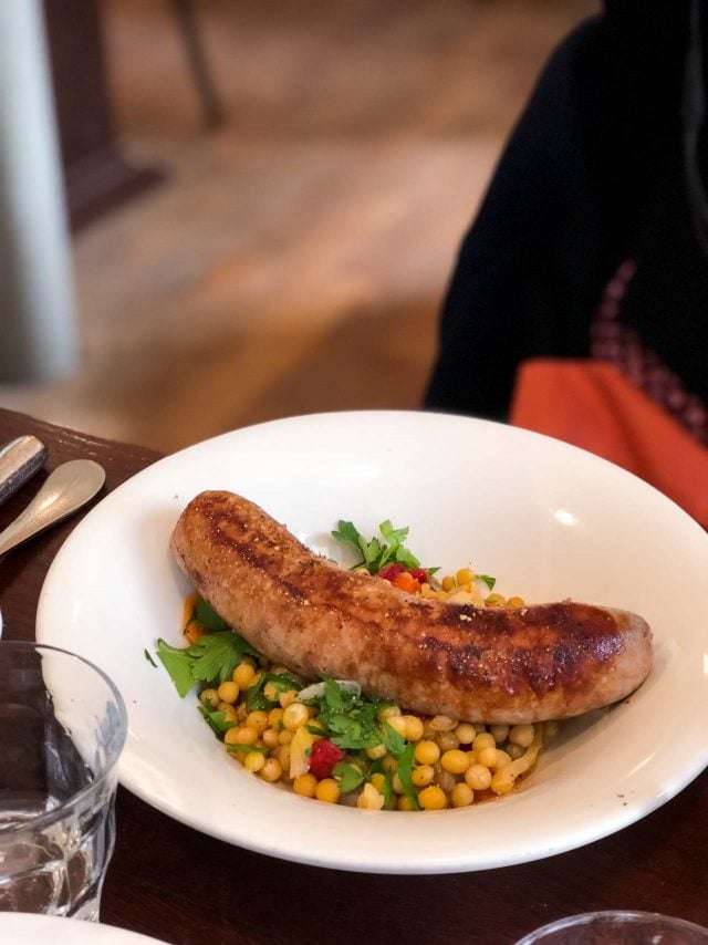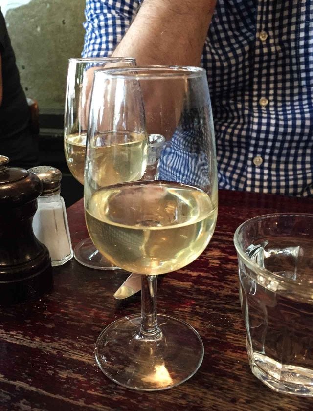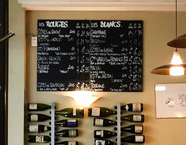 The cafรฉ features natural wines, championed by some, although not to everyoneโs taste. If well-selected, they can be vibrant and captivating (and intriguing). If not, you can expect some fizziness, errant acidity, or other qualities you might not expect in a glass of wine. The white Cรดte du Rhone weย fell into the first category, and since the prices are gentle, you wonโt feel bad if take a chance on something different.