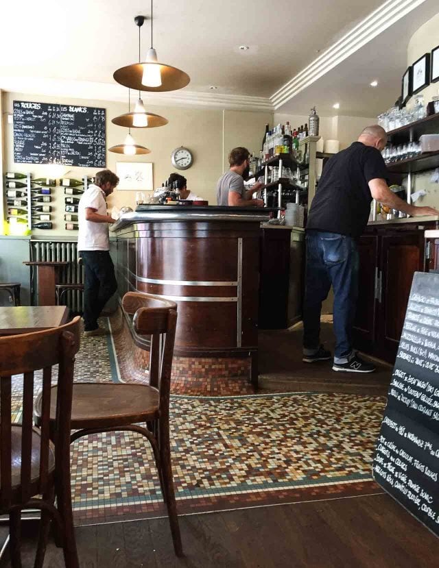 At Cafรฉ de la Nouvelle Mairie, theyโre doing bistro v2.0 right. An energetic, engaged staff, quick with banter, exemplifies the word convivialitรฉ. Youโll get a friendly welcome, and perhaps a glass of wine at the zinc bar if youโve got to wait, from their reassuringly reasonable list of wines.