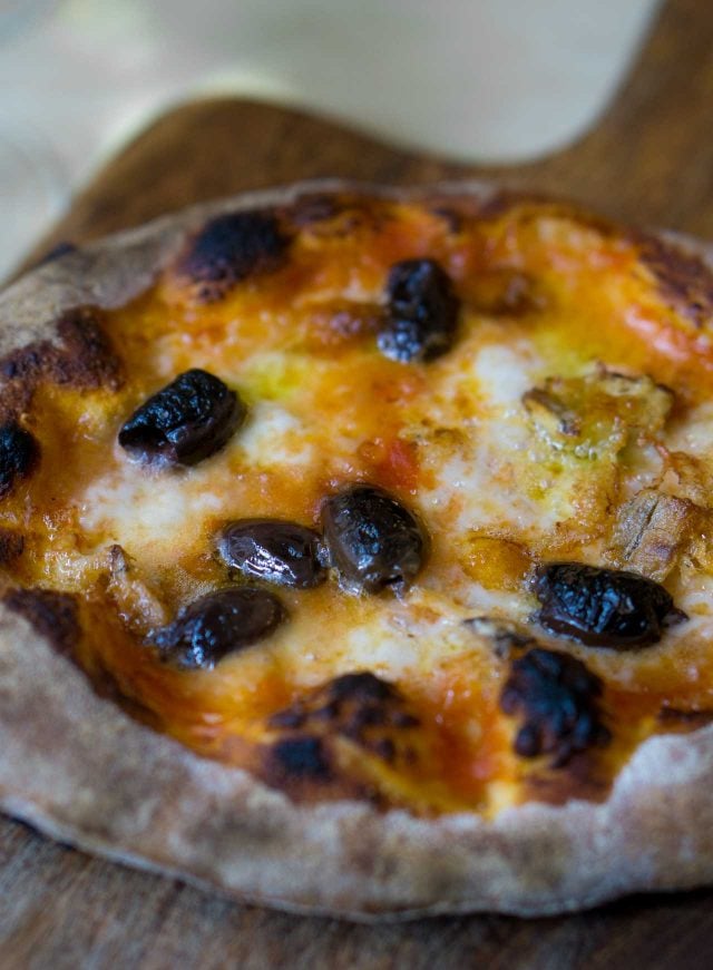 The appetizer pizzetta (above) has become the signature dish at this corner cafรฉ. The little pizzetta that I started with was made with taleggio cheese and Niรงoise olives, a mix of pitted and unpitted. If you go in the evening, when the cafรฉ becomes a wine bar, only the pizzettas are available. (The vibe and crowd is also decidedly different at night and if you want to dine, youโll want to come for lunch.) I split the pizzetta with my dining companion, who had the Kefta made of pork with labneh.