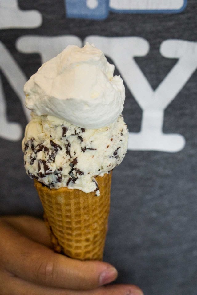 All ice creams sold in the shop are churned daily, and any left over at the end of the day get packed into pints and sold to go. At present, Hallie rotates through five changes flavors each day, but there are five that stay constant (subject to change); Vanilla, Chocolate, White Coffee Stracciatella (coffee bean-chocolate chip), and Red Flag, strawberry ice cream studded with graham brittle.
