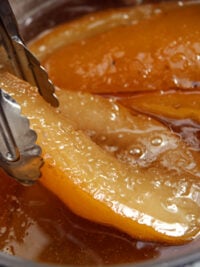 - Once done, turn off the heat and let the citron pieces sit in the syrup for one hour.
