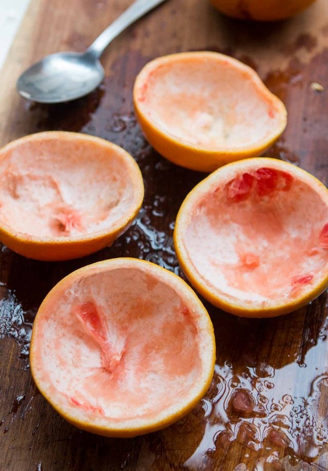 - 4 grapefruit halves, from two grapefruits, scraped clean with a soup spoon