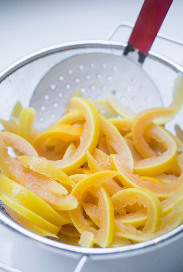 - Drain the peels and repeat the simmering and draining process with the grapefruit peels one more time.