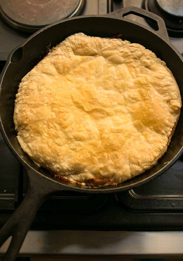 Once baked, under a crackly, crispy disk, most sins are forgiven, even bleu, or blue ones. And who can quibble with a warm, savory tart on a cold winter day? I know I canโt.