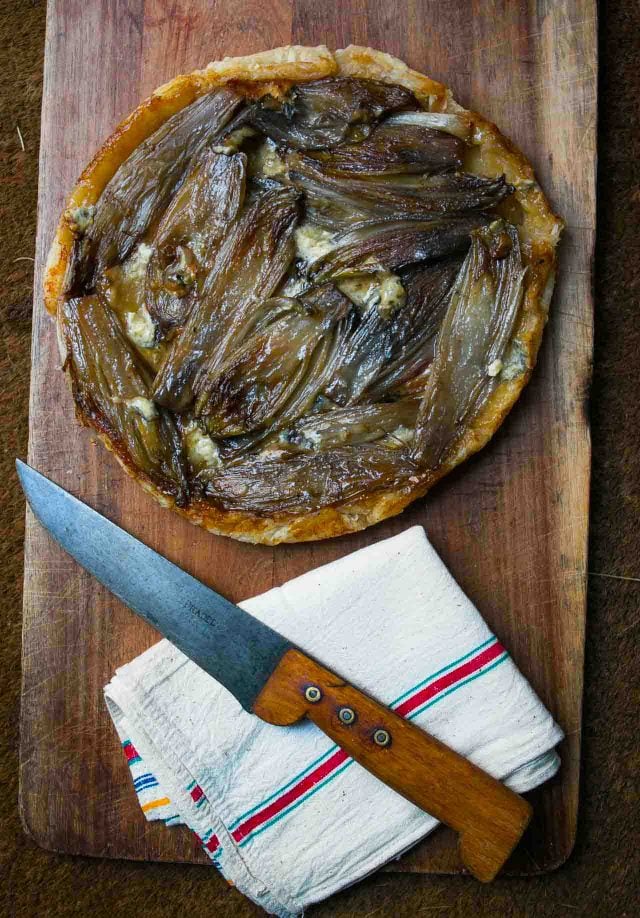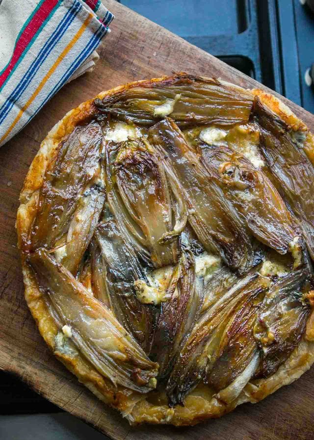 While this caramelized endive tart is especially good right out of the oven, itโs also excellent reheated and served the next day for lunch. You could also cut it into smaller wedges and serve it as an appetizer, and if youโre not fond of blue cheese, slightly aged goat cheese would work just as well.