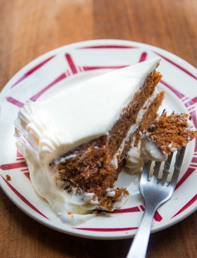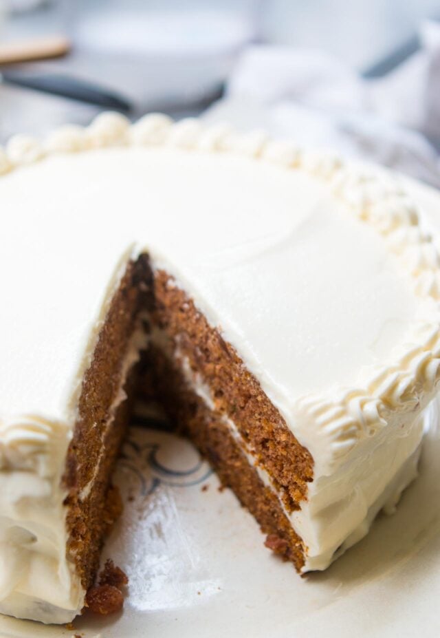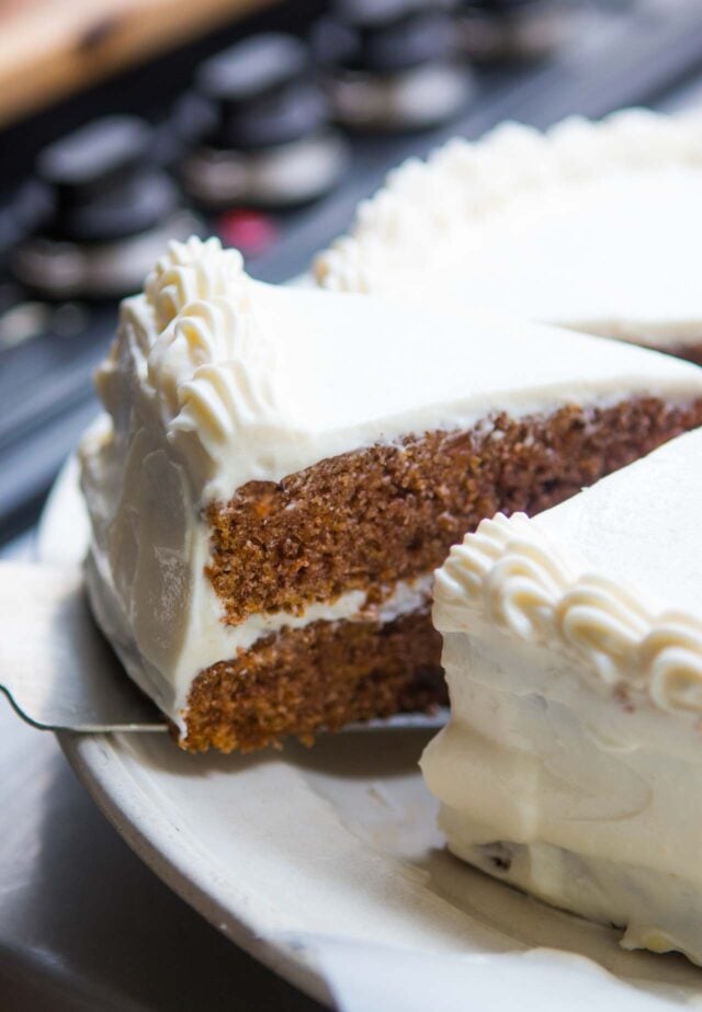 My specialty is not โover the topโ desserts and youโd be wasting your time if you came here (or in my books) for sky-high cakes slathered with buttercream and decorated with Oreos, or multi-colored cakes where, when you slice them, an avalanche of store-bought candy falls out. I know those are fun for people to make, and people like to eat (and share pictures of them online), and I have nothing against any of them. But Iโm more of a classic baker. While I donโt make one often, Carrot Cake is a classic thatโs at the top of my list. And yes, a good part of that is because of the cream cheese frosting.