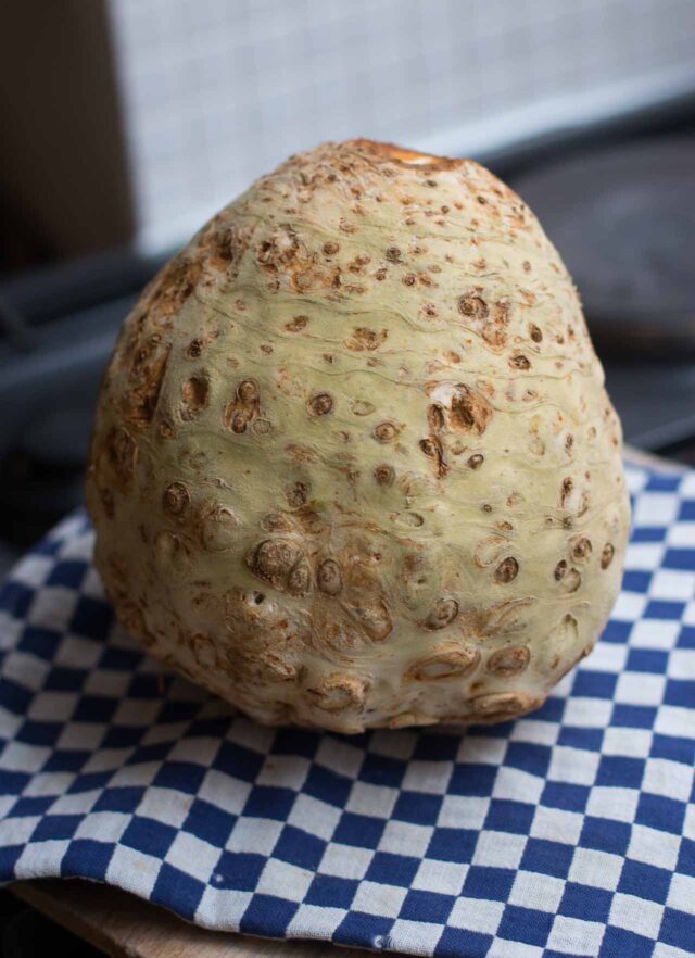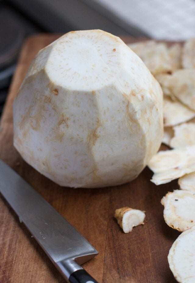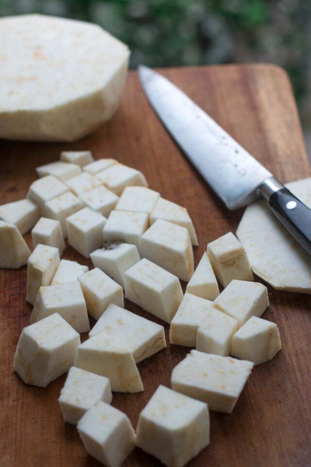 - 1 large, or several smaller, celery roots , (about 3 pounds/1.5kg) peeled and cubed