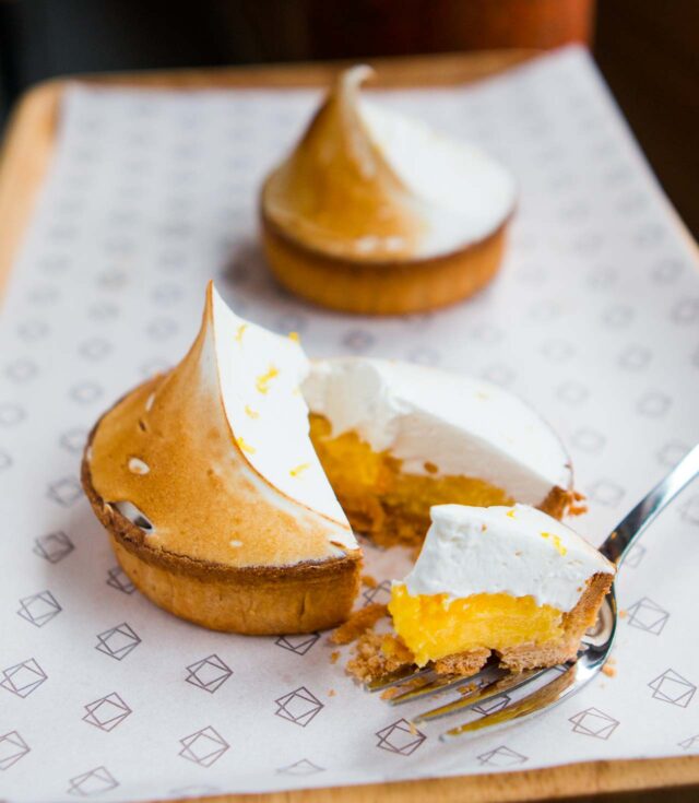 They are, however, making some lovely little pastries, such as lemon tartlets mounded with meringue โ one of the best lemon tarts in Paris, gooey walnut tarts, and individual bittersweet chocolate cakes. Iโm also mad for the housemade granola bars.