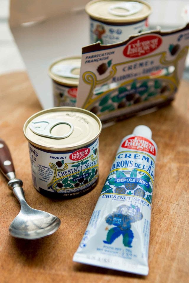 First up, the word crรจme is a misnomer. Thereโs no cream in it; itโs just pulverized and pureed chestnuts. In some cases, the chestnuts used are already candied. (They use the brisures, the bits of candied chestnuts that are broken in the complicated candying process.) In other cases, the paste is sweetened with vanilla added, and packaged up, for all to enjoy. Thereโs no fuss, no muss.