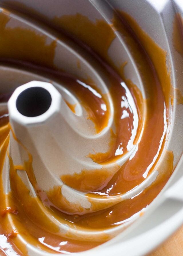 I also tried using my salted butter caramel sauce in place of the dulce de leche or cajeta. (And wondered if Iโd get called out for mentioning one but not the other.) And because Iโm such a sport, I made it in a round cake pan, for those of you who donโt have a bundt or tube pan so I could confidently answer, โYes, it works!โ