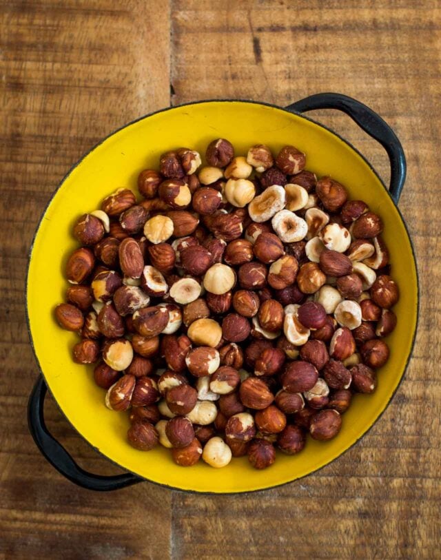 - 1 cup (140g) hazelnuts, toasted, either left whole (if small), or very coarsely chopped